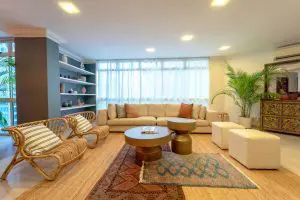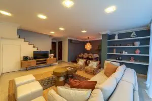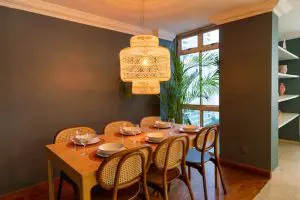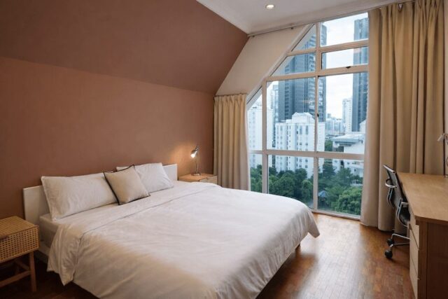 Langston Ville is a charming place with Moroccan touches and dazzling finishes. The apartment is filled with vibrant colors alongside the vivid designs to bring out a vibrant appeal. Mixing different colors such as silver, yellow, light brown and golden color tones to portray the vast sandy desert of Morocco. Upon entering, the immediate detail that will catch your attention is the tribal rugs laid in the center of the living room. This duplex penthouse is also filled with large windows, soaking the whole space with natural light!
